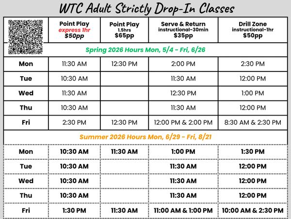 The goal of these classes is to teach you the fundamentals of tennis and prepare to play fun points and matches. We will teach the technical know-hows of tennis that will include basics of proper grip, stance, footwork, swing pass, and lots of repetition through drills and some live hitting with fellow players. Various progressions to play point games and build up to play a match.